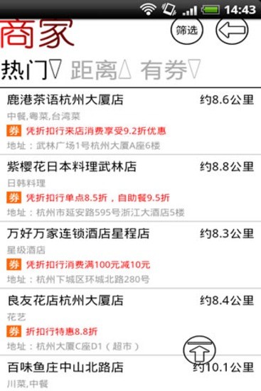 1、杭州优惠APP提供了丰富的商家优惠信息,用户可以根据自身需求,快速筛选出心仪的优惠活动。