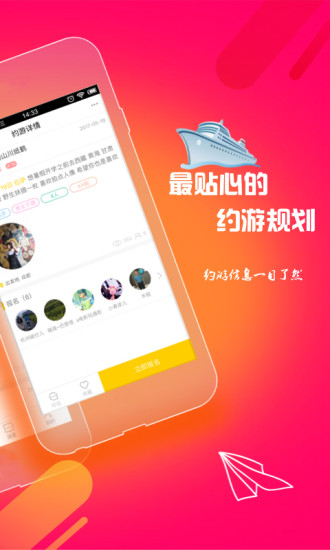 1、约游吧APP注重用户体验,界面简洁美观,操作流畅易懂,让用户爱上每一次点击。