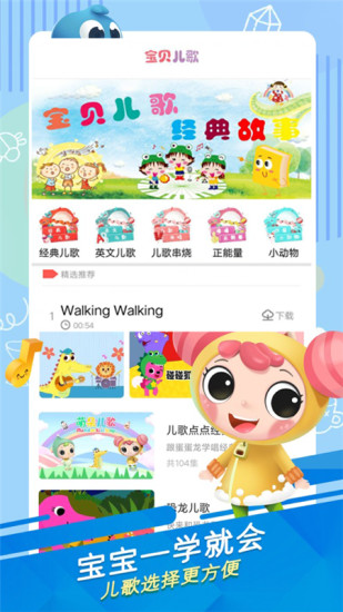 1、宝贝学唱儿歌APP采用了生动的动画和可爱的卡通形象,吸引孩子们的注意力,让他们在愉快的氛围中学习儿歌。