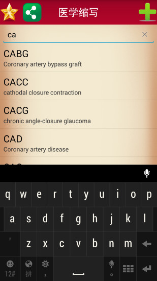 2、支持快速搜索功能,用户只需输入关键词,即可迅速找到相关医学缩写及其解释。