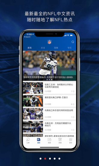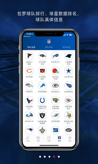 1、NFL橄榄球APP提供实时赛事直播功能,用户可以观看高清流畅的橄榄球比赛直播,感受现场氛围。