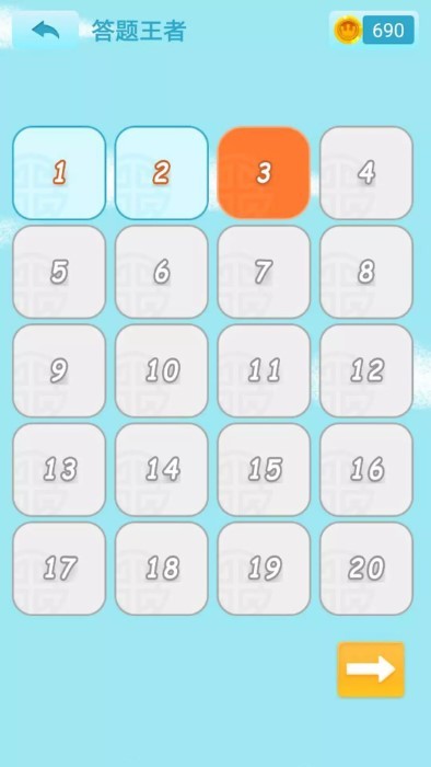 2、进入对应玩法页面后,可按照序号顺序选择想要挑战的关卡,从易到难逐步解锁更多答题内容。