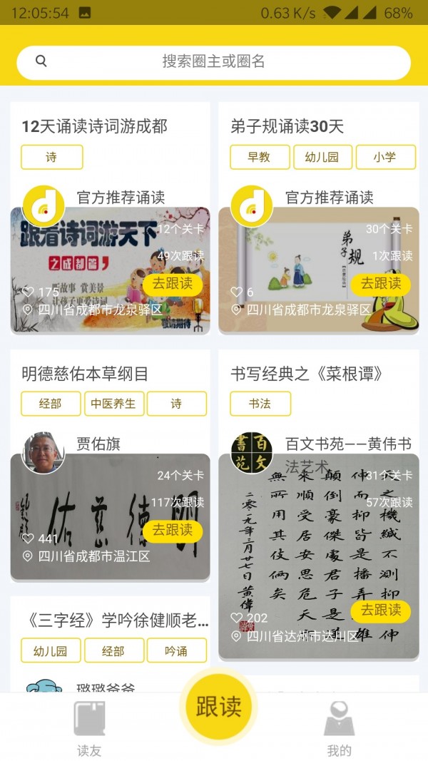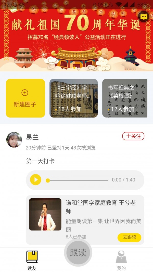 4、搭建专属诵读交流圈子,支持个人或组织发起邀约共同参与带读活动。