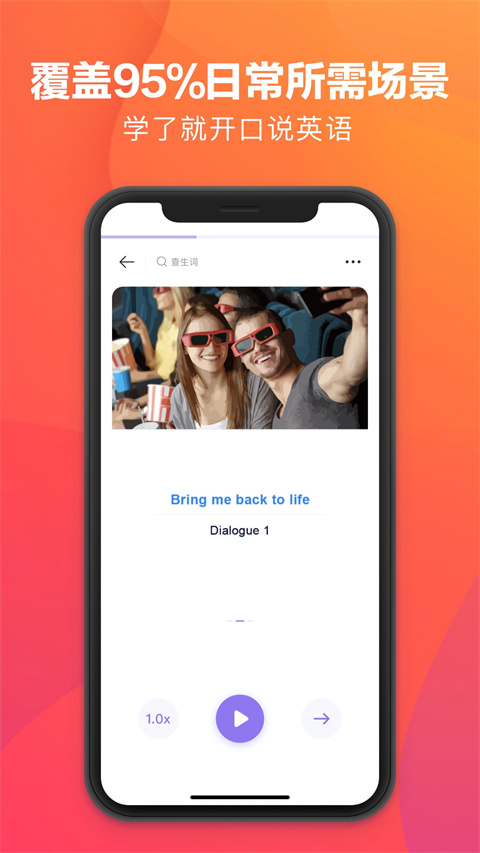 5、智能系统实时对发音进行纠正与打分,全程给出反馈,助力学习者大胆开口说英语。