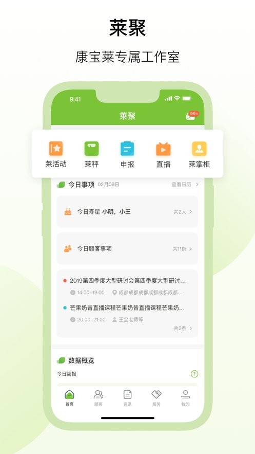 莱聚是聚焦康宝莱营销人员的移动办公服务平台,依托智能化办公模式,整合业务管理、信息传递、营销运营等多元功能,可定制专属办公方案,降低获客成本,提升服务效率,为康宝莱事业伙伴提供一站式事业赋能支持,涵盖业务管控、客户维护、市场运营等全场景,助力营销人员轻松开展工作,实现高效办公与事业提升,全方位满足康宝莱营销场景下的各类办公需求。