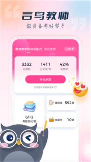 言鸟教师是一款实用便捷的教育学习类APP,能为学习提供高效便利的支持。拥有海量学习题库,覆盖各类核心知识点,收录大量历年真题,支持真题模拟训练,帮助巩固基础、提升应试能力。所有学习资料、题库、真题均免费提供使用,无额外收费门槛,真正做到普惠学习,轻松获取优质学习资源。功能实用、资源丰富、使用零成本,兼顾便捷性与实用性,有效助力用户高效学习。