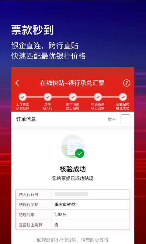 1、进入快贴宝首页,可选择银行/商业承兑汇票服务,同时支持快捷开通、行业资讯等辅助功能,点击底部【我的账户】进入个人中心。
