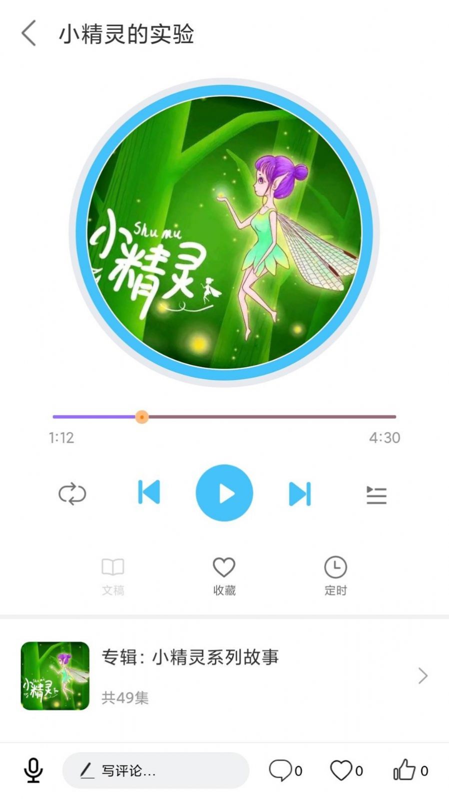 4、进入内容详情页后,可通过播放控件进行音频播放,同时能查看【全部评论】了解其他用户反馈。