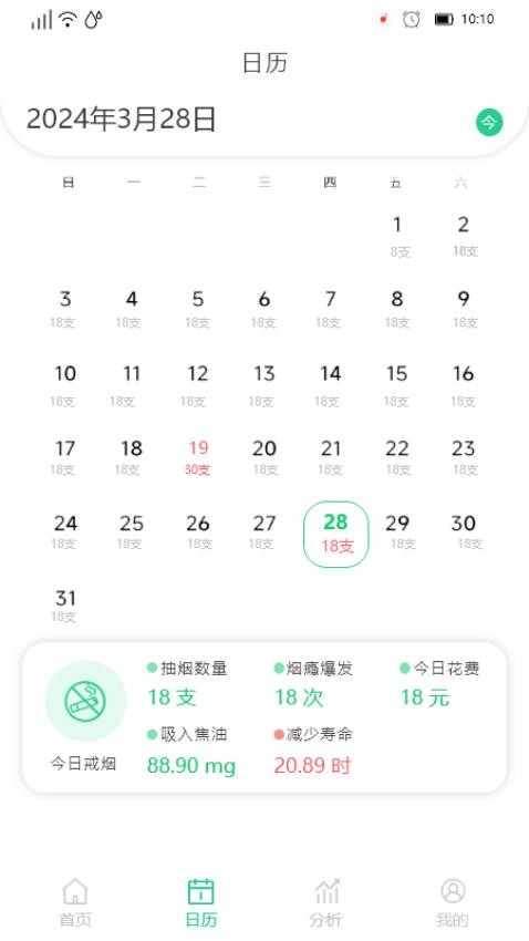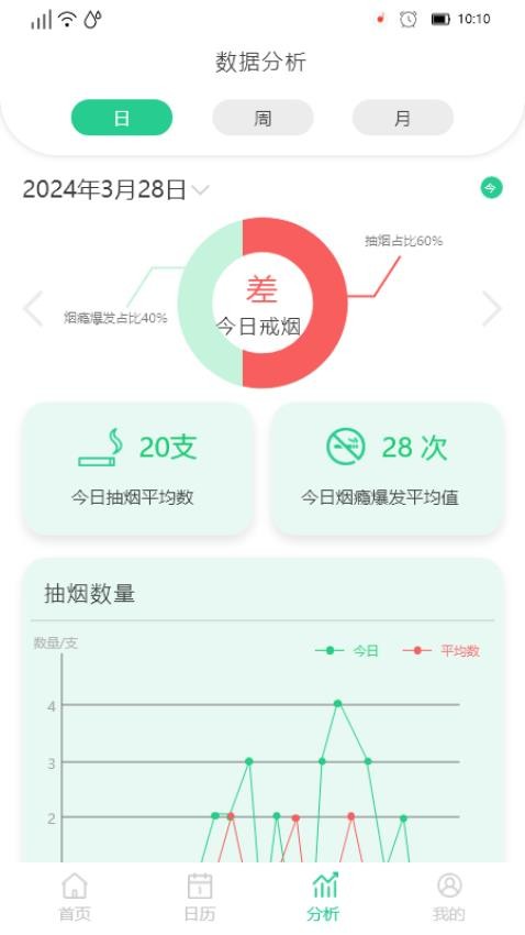 3、健康数据分析:APP会对用户的健康状况进行数据分析,以图表形式直观展示戒烟过程中的身体变化。