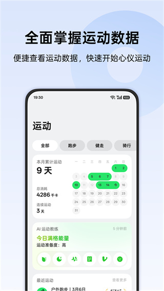 1、将运动记录与健康数据整合展示,信息更加集中,日常查看更加方便直观。